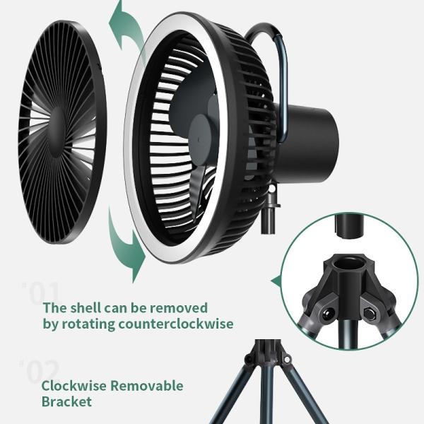 HEBRONFAN 8 Inch Rechargeable Fan Tripod Hanging For Tent Camping Images |